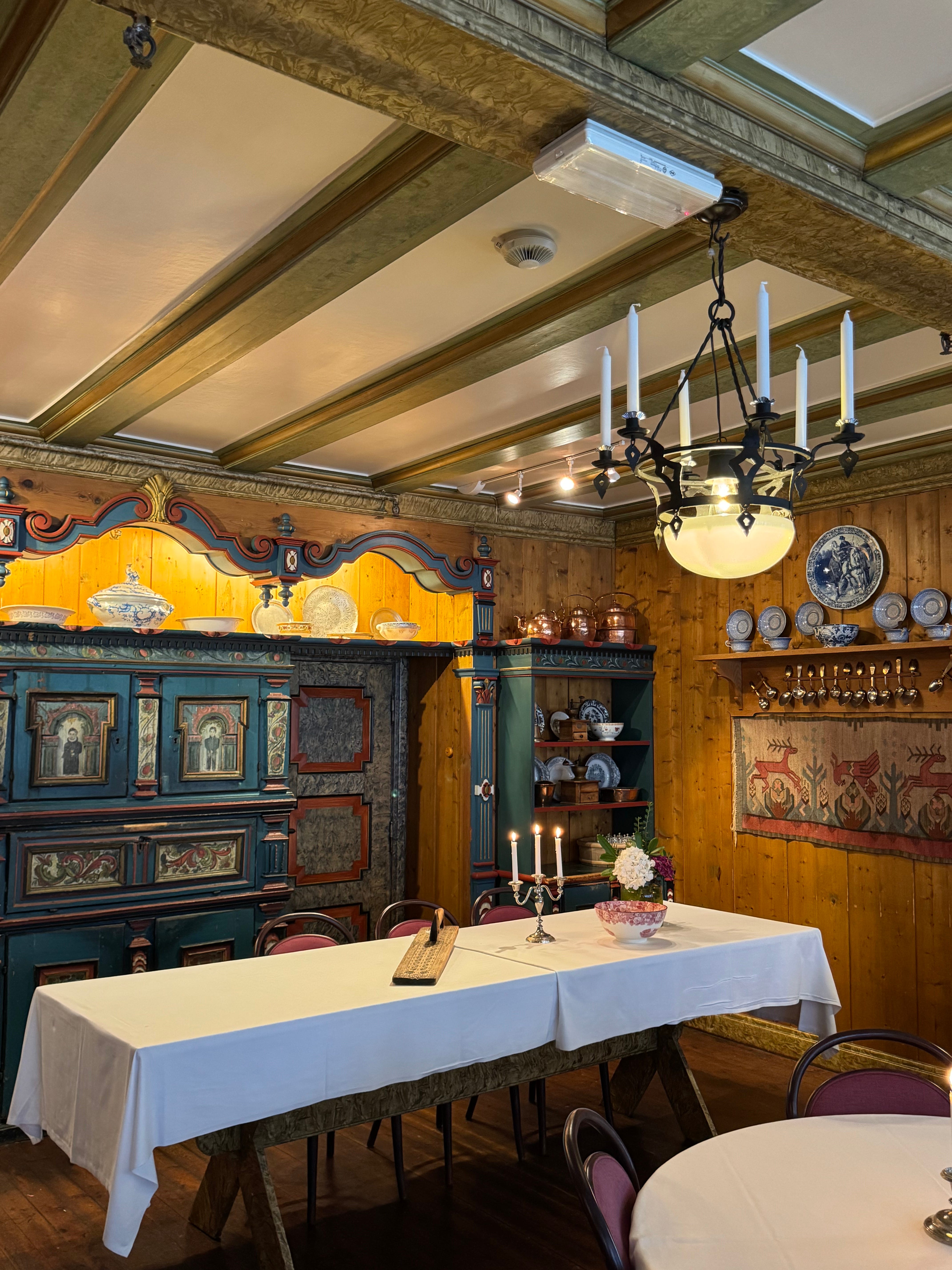 the ornate dining room at the Utne Hotel, which serves a five course dinner to guests every night. the menu was extremely local - down to the butter.