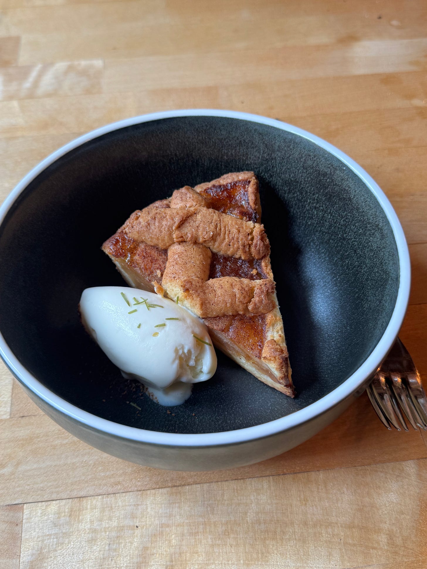 (also from Spildegarden) apple pie made with apples from the fjord and rosemary ice cream.